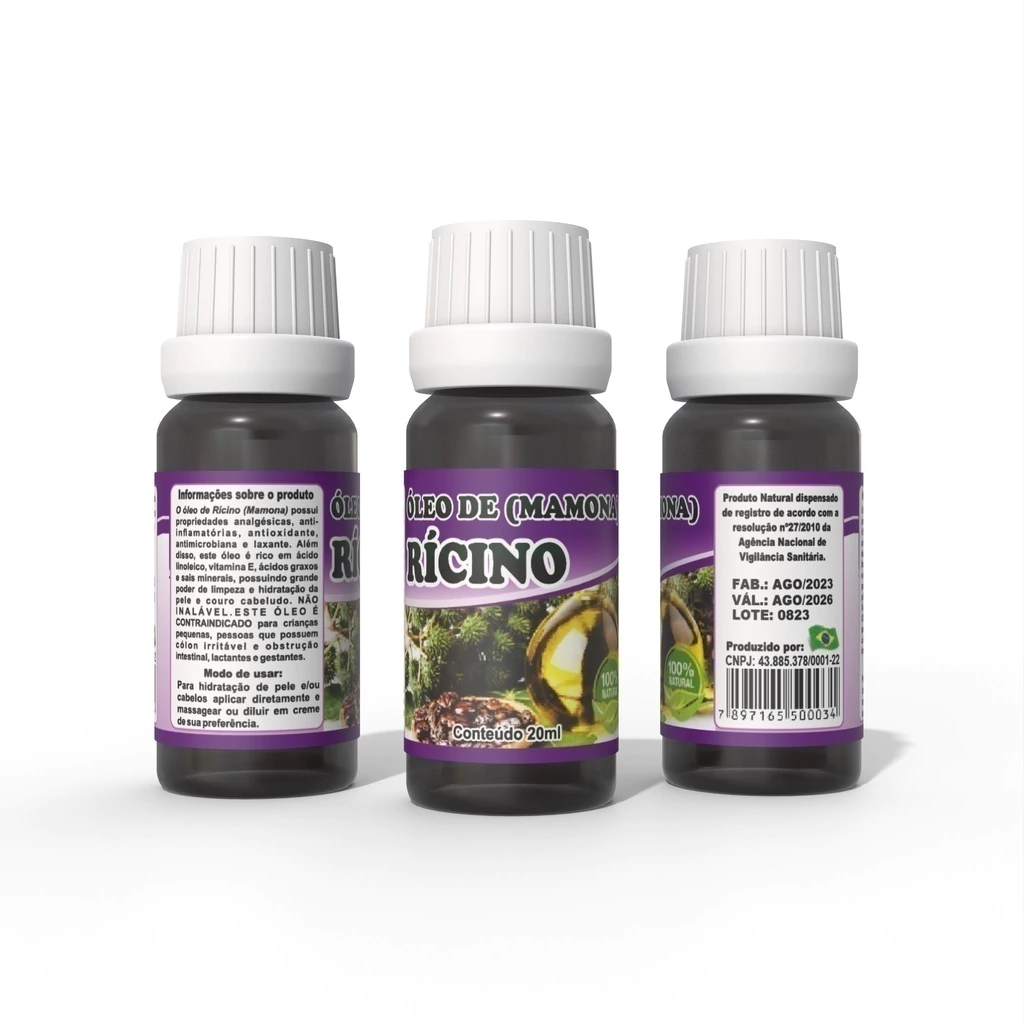 O Óleo de Rícino (Mamona) possui propriedades antialérgicas, anti-inflamatórias, antioxidante, antimicrobiana e laxante. Além disso, este óleo é rico em ácido linoleico, vitamina E, ácidos graxos e sais minerais, possuindo grande poder de limpeza e hidratação da pele e couro cabeludo. Apresentação: em frasco de 20ml com gotejador (conta gota) e tampa lacre. ? ATENÇÃO: Este não é um óleo essencial, não sendo recomendado portanto para fins aromáticos. O método de extração a frio não é focado em extrair o cheiro do material, portanto a maioria dos óleos vegetais não possuem cheiro característico. Sua principal função é extrair as propriedades da matéria prima para ingerir/utilizar na pele. Alguns tipos de óleos necessitam de outros óleos carreadores (como amêndoas, argan e oliva) para a diluição correta e estes são em geral neutros 100% vegetais também. Assim sendo, não se recomenda o uso do óleo vegetal para aromaterapia ou para essências, pois este não é seu propósito. -----------------------IMPORTANTE! Pode ocorrer VARIAÇÃO de tonalidade entre a imagem de exibição e o produto físico. Em caso de dúvidas, mande a sua pergunta, ficaremos felizes em falar com você :)
